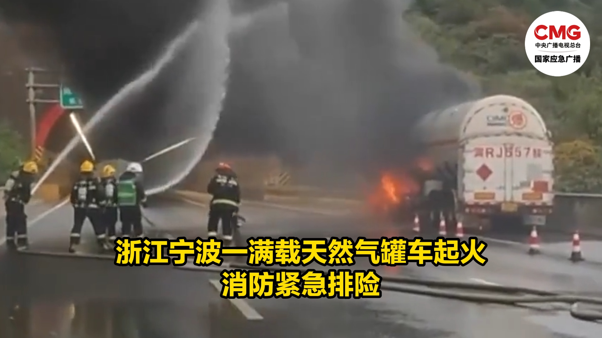 浙江寧波一滿載天然氣罐車起火 消防緊急排險